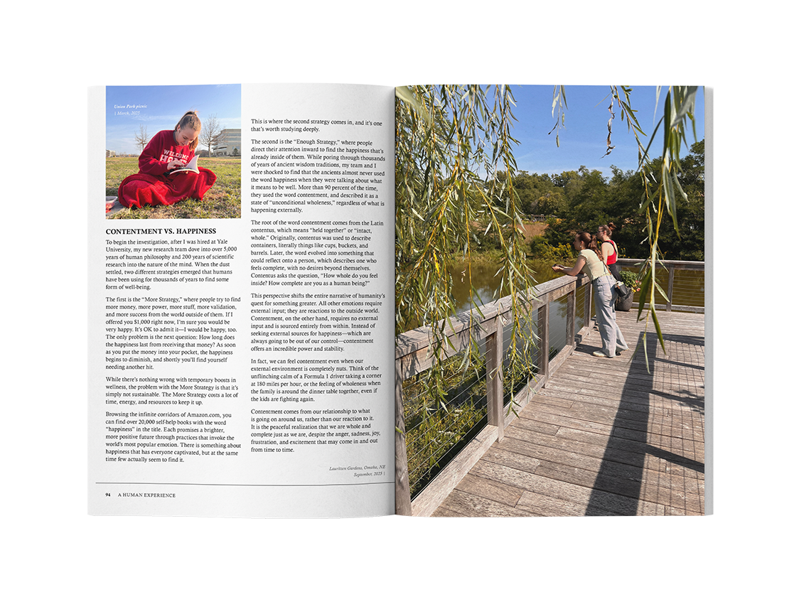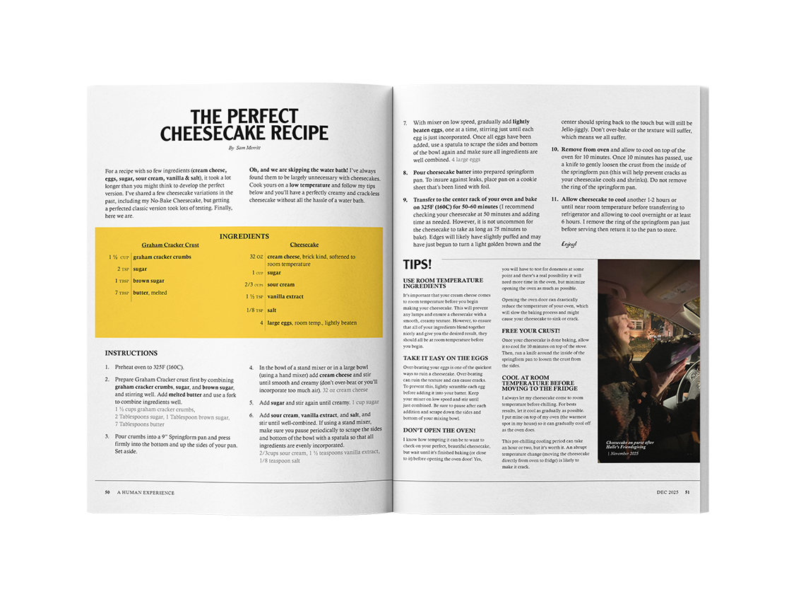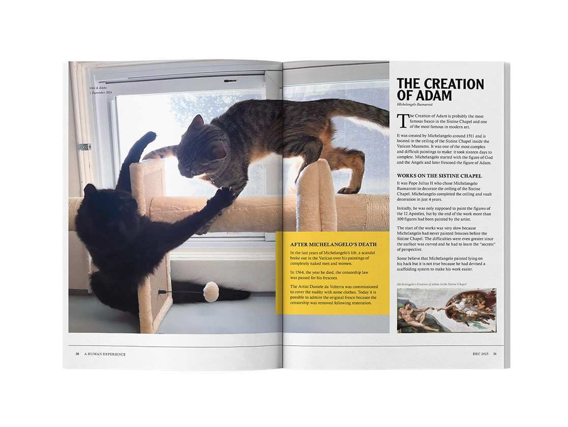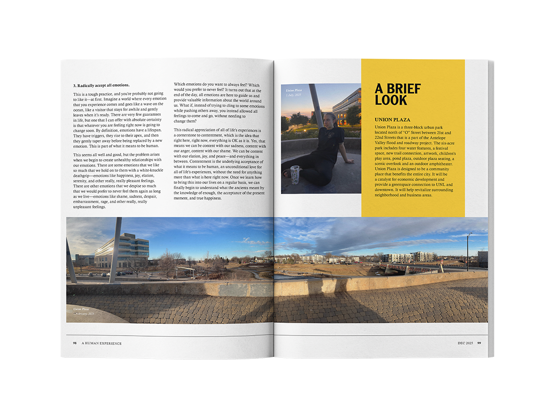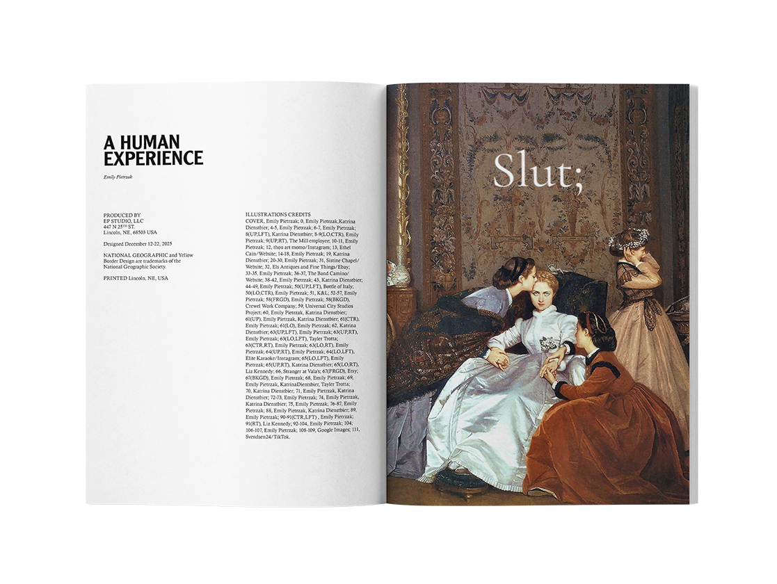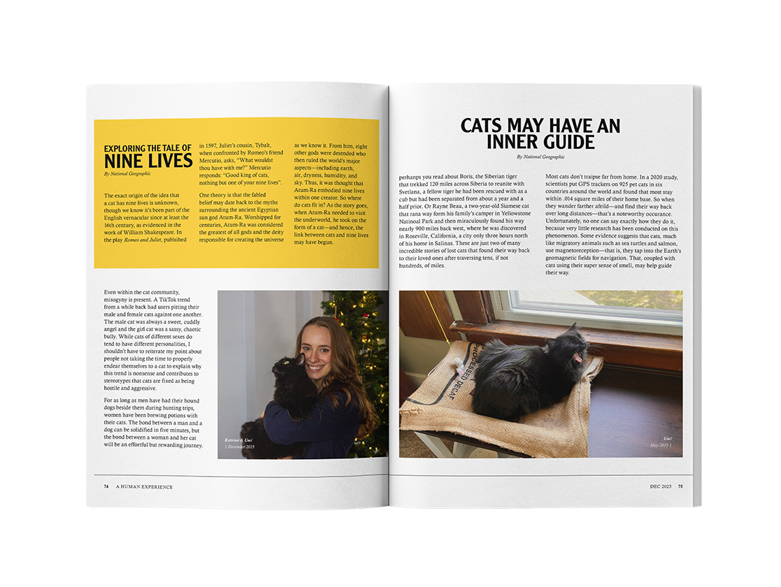 This edition of National Geographic was designed as a gift for a friend. It loosely follows the brand guidelines of National Geographic, with a few differences to accommodate the addition of personalized ads and a larger quantity of photos.