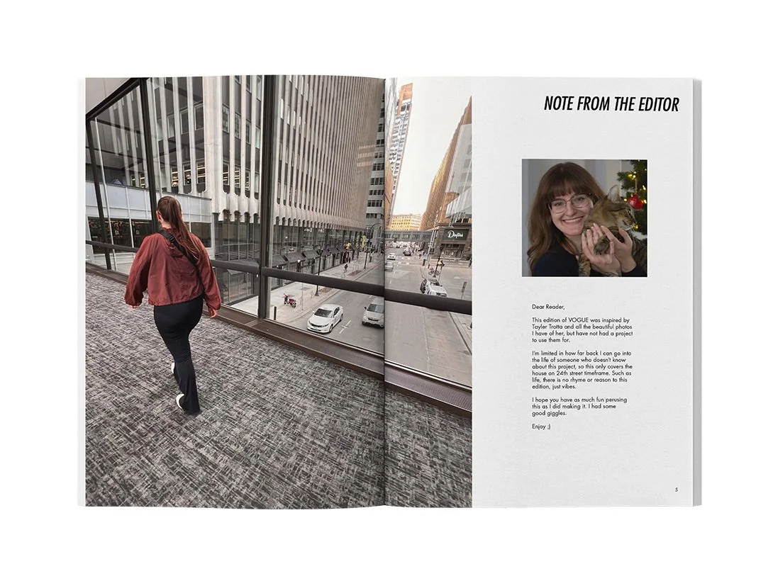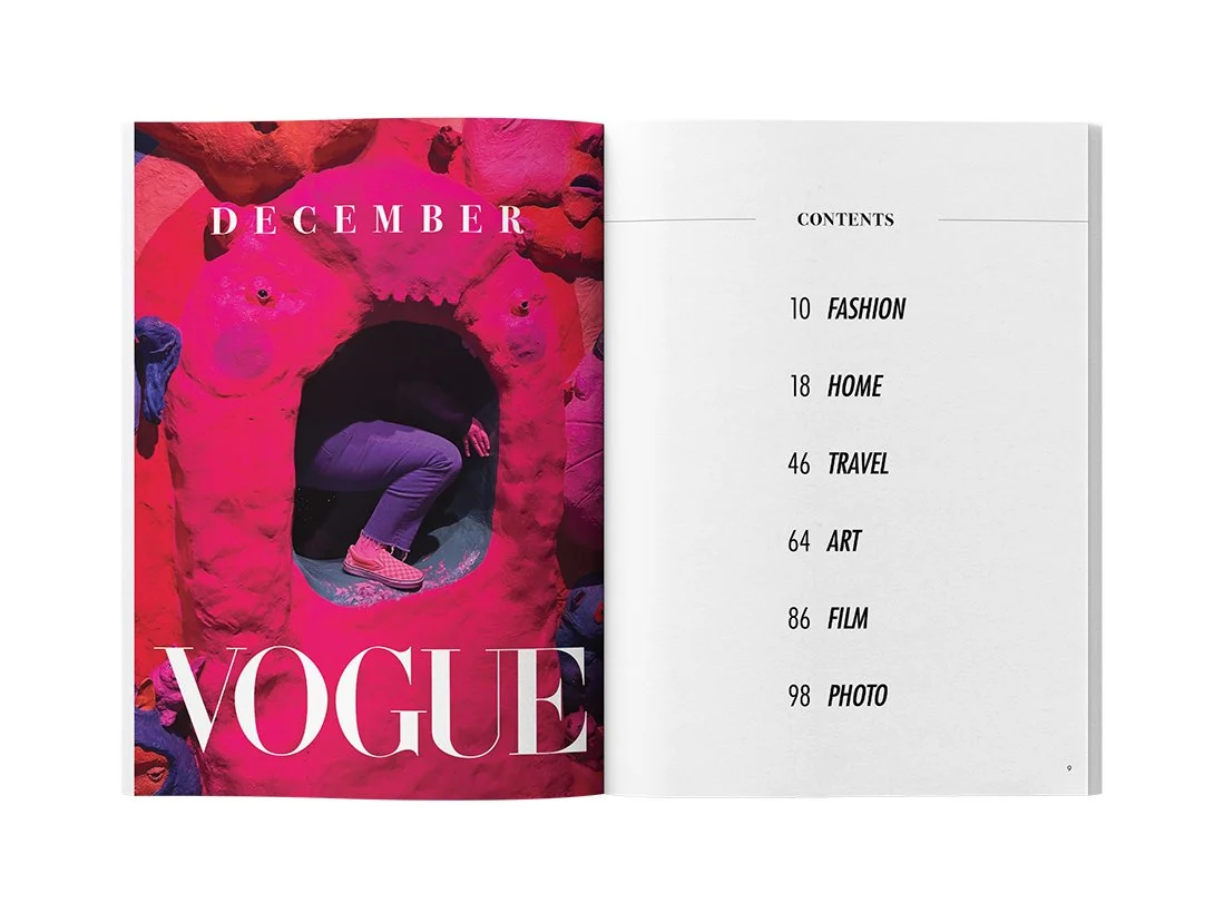 This edition of Vogue was designed as a gift. It is not intended for sale or distribution. It loosely follows the brand guidelines of Vogue Magazine, with a few differences to accommodate creative inspiration.